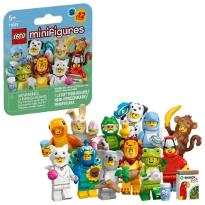 Girls and boys ages 5 and up can play out fun stories with 1 of 12 collectible figures from the LEGO® Minifigures Animal Series 28 (71051) small animal toy mystery boxes. There is 1 surprise LEGO minifigure in each box and a total of 12 charactersto collect including toy figures wearing parrot, lion, frog, crocodile, Dalmatian, goldfish, cute bunny, peacock, fluffy cat, koala, dolphin and monkey costumes. Each of the 12 minifigures comes in a sealed mystery box, and all are accompanied by at le ast 1 accessory. These detailed cute animal toys can be added to an existing collection, proudly displayed or used to create fun-filled stories. This small gift for kids who like animals and nature is a fun treat and inspires great storytelling and countless hours of playtime on their own or with friends.