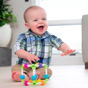 Each edge is connected by elastic bands to allow little hands to bend it and twist it this way and that. Meanwhile, the rubbery textured beads spin and slide for an extra boost of sensory fascination. Little ones just can’t stop exploring. Grab their attention and keep them learning with Quubi!
