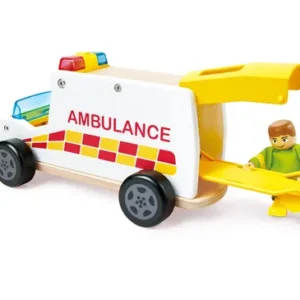 This toy ambulance comes with a driver, siren, and flashing lights, and the back door can be opened to transport patients!